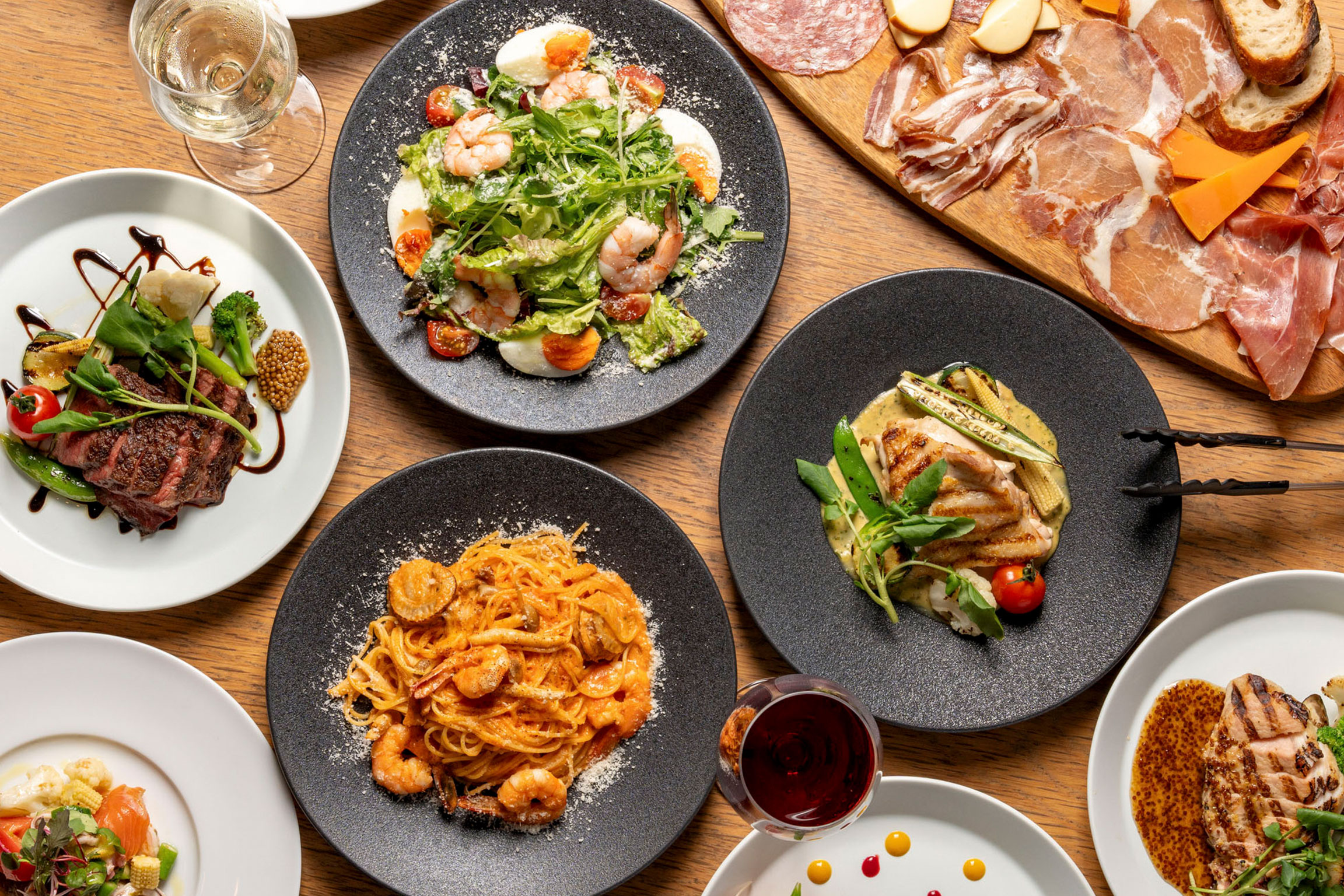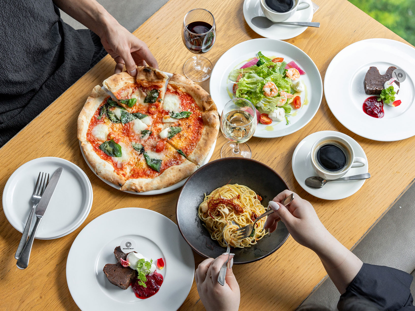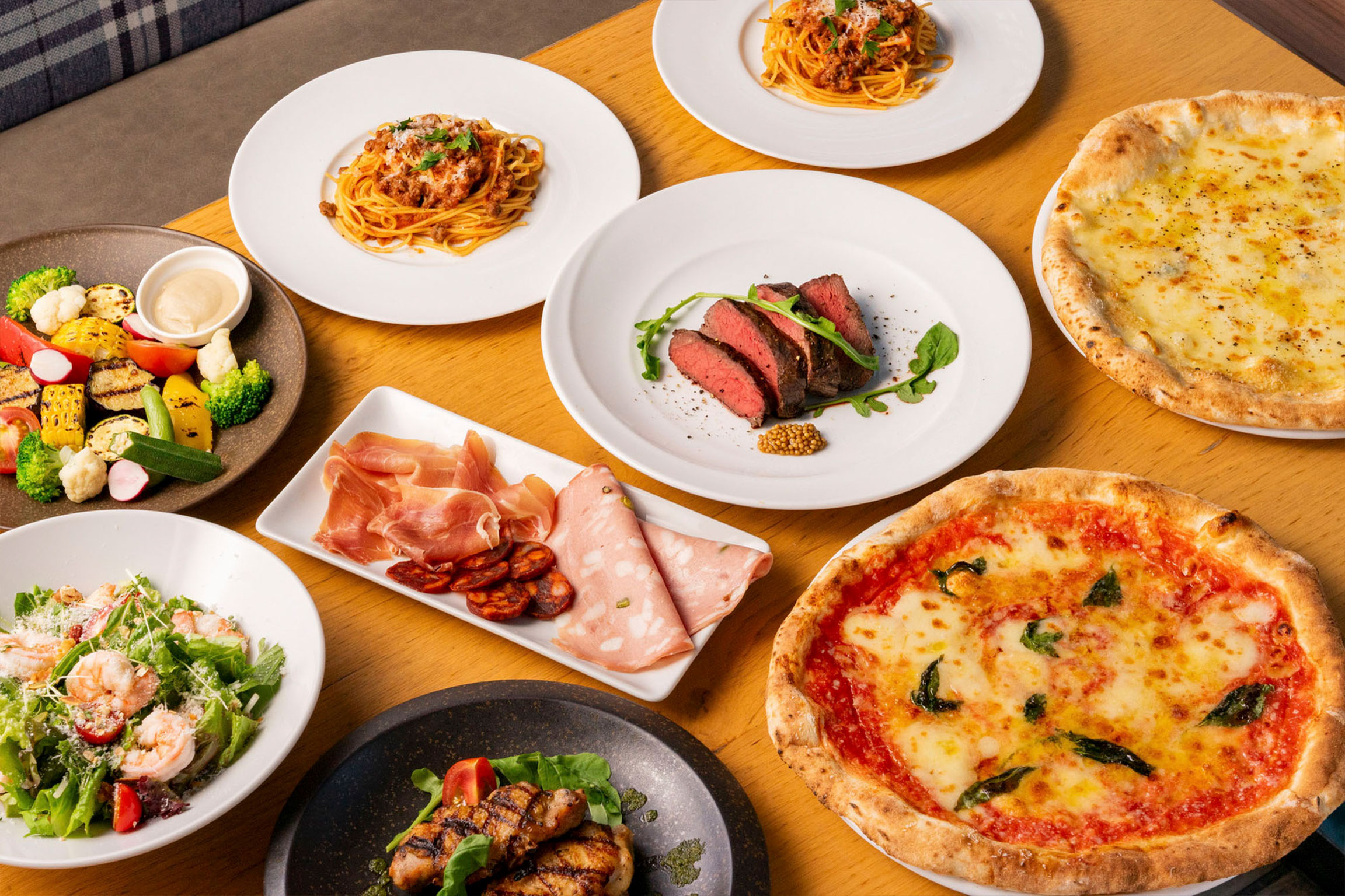 契約農家から毎朝届く農園野菜を使用したサラダや、新鮮な魚介のカルパッチョ、熱々のアヒージョ、素材にこだわったグリル、もちもちの石窯ナポリピッツァやパスタなどをお楽しみいただけます。